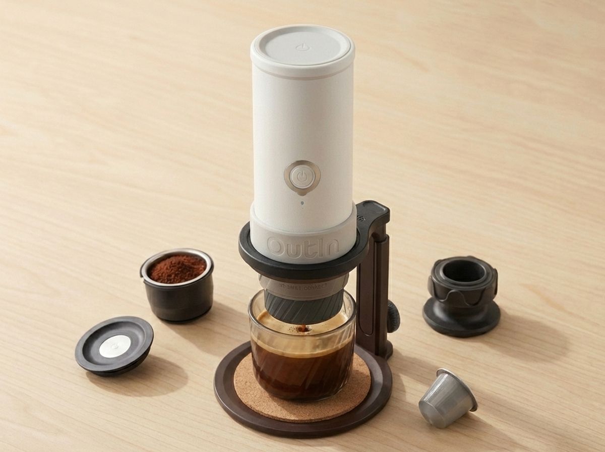 La Outin Mino parte de una idea simple pero potente: hacer espresso sin necesidad de enchufes.